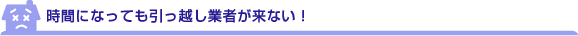 さて、いざ引越しという当日、約束の時間になっても引越し業者がやってこない…。すぐに見積書か契約書に書いてある事務所に連絡を入れましょう。もしかしたら交通事情か何かで遅れているのかも。時間通りにやってこなくて、予定が大幅に狂ってしまったら・・・不可抗力でないかぎり金銭的な実害は業者に請求できます。遅くなってホテルに泊まってしまったなど、はっきりと業者が来た時刻、引越しが終わった時刻、かかった費用をわかるようにしておきましょう。でも、一番いいのは約束通りに引越し業者がやってくること。トラブルを避けるために、三日前に電話で確認しておくとより安全です。